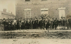 This photograph shows the climax of the courthouse wars between Beverly and Elkins. In 1899 a gang of Elkins residents decided that they were going to take matters into their own hands and steal the court documents from Beverly to bring to Elkins. Beverly residents got wind of this plot, took up arms, and rose to the defense of the courthouse. One of those who came to the defense of the courthouse was a black man named Samuel Tibbs. A close examination of the photograph reveals that several men of color participated in the courthouse defense.