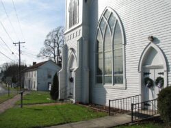 The Methodist Church had its roots in Beverly from the time of its settlement. Services were first held in the private homes and lawns of believers. The first “church” was the log home of Dr. Benjamin Dolbeare which was located at the eastern end of the bridge. Dr. Dolbeare was the first physician in Randolph County. He practiced for several years in Beverly before moving to Clarksburg. Lorenzo Dow, brother-in-law to Dolbeare, was a noted Methodist missionary who often preached in Beverly. It is said that he preached on a log near town on his first visits. Bishop Francis Asbury preached in Beverly in 1788 and stayed at the home of Colonel Benjamin Wilson. The first Methodist Church was built of logs and located at the western end of Court Street. The log church was used for almost eighty years until The Civil War. The Union dismantled the church to use the logs for huts. The second frame church was built on Walnut Street in 1867 and used until 1890. The present Beverly Methodist Church was built in 1890 on North Main Street.